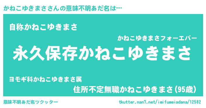 | 男性向けラノベタイトル風あだ名 | 『かねこゆきまさという概念が存在しない退屈な世界 』 |