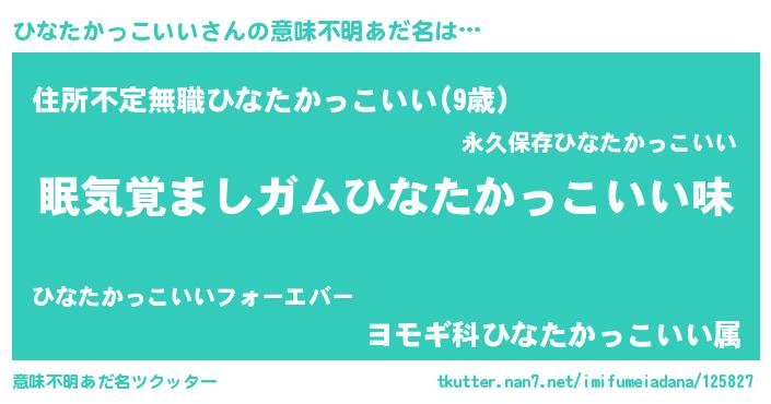 | 男性向けラノベタイトル風あだ名 | 『ノーゲーム・ノーヒナタカッコイイ』 |