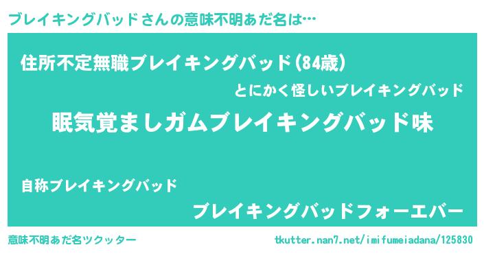 | 男性向けラノベタイトル風あだ名 | 『ノーゲーム・ノーブレイキングバッド』 |