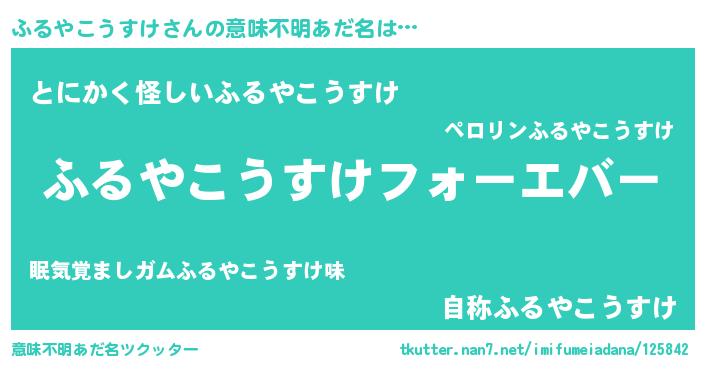 | 男性向けラノベタイトル風あだ名 | 『やはりふるやこうすけの青春ラブコメはまちがっている 』 |