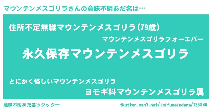 | 胡散臭い通販商品みたいなあだ名 | 『来世でも幸せになれる健康食品…その名も「マウンテンメスゴリラ」』 |