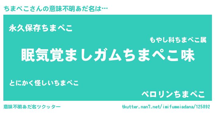 | ヒーロー風カッコイイあだ名 | 『正義の使者ちまぺこ』『ネオチマペコ』 |