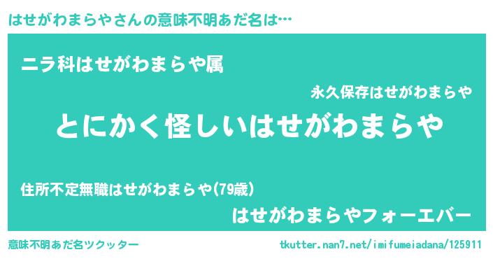 | 伝説のあだ名 | 『解き放たれた遊び人はせがわまらや』 |