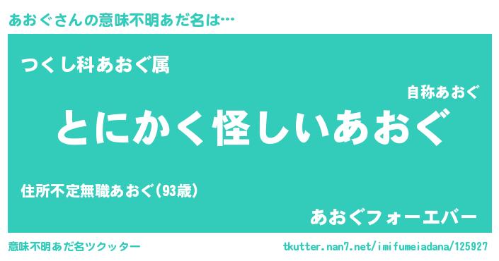 | ヒーロー風カッコイイあだ名 | 『暗黒騎士アオ』『ウルトラあおぐマン』 |
