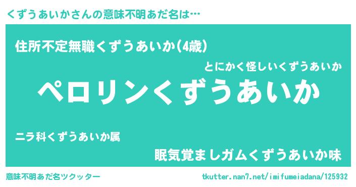 | 恥ずかしいあだ名 | 『プリティーくずうあいか』『くずちん』 |
