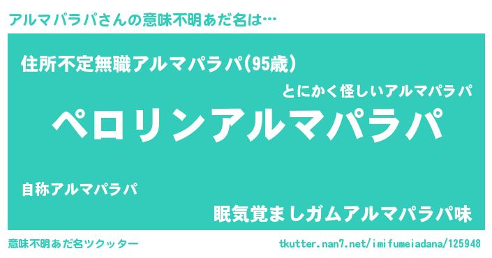 | ヒーロー風カッコイイあだ名 | 『スーパーアルマパラパ』『仮面アルダー』 |