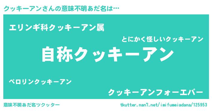 | 男性向けラノベタイトル風あだ名 | 『Re:クッキーアンから始める異世界生活』 |