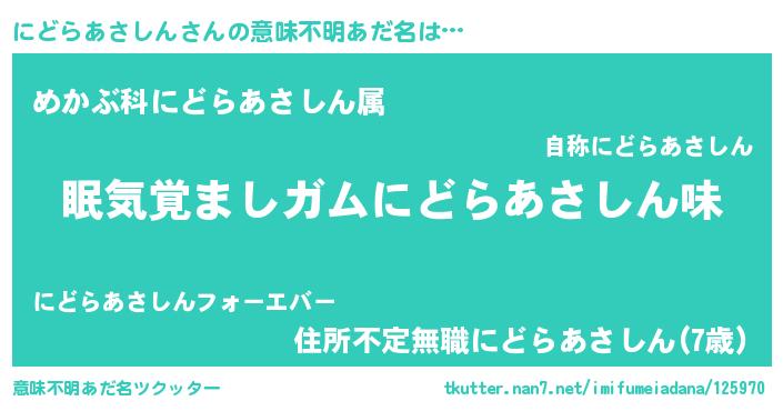 | 女子向けラノベタイトル風あだ名 | 『にどらあさしん恋絵巻』 |