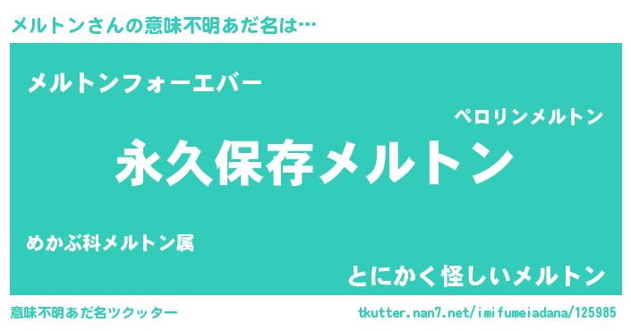 | ヒーロー風カッコイイあだ名 | 『ネオメルトン』『ウルトラメルトンマン』 |