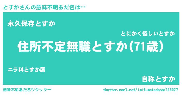 | ヘコむあだ名 | 『とすか(苦笑)』『とす太郎』 |