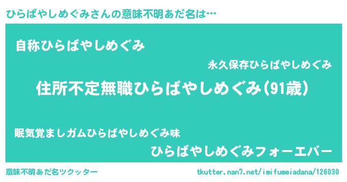 | ヒーロー風カッコイイあだ名 | 『仮面ヒラダー』『ネオヒラバヤシメグミ』 |