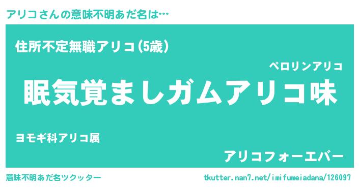 | 料理風あだ名 | 『アリコのトマト煮』 |