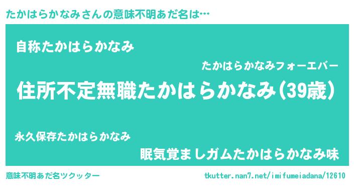 | ヘコむあだ名 | 『つくし』『たかはらかなみ(笑)』 |