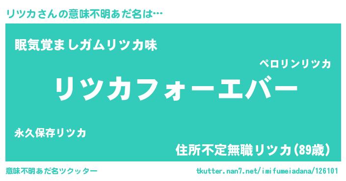 | 自動車の名前っぽいあだ名 | 『ランリツギーニ』『リクア』『リンR』 |