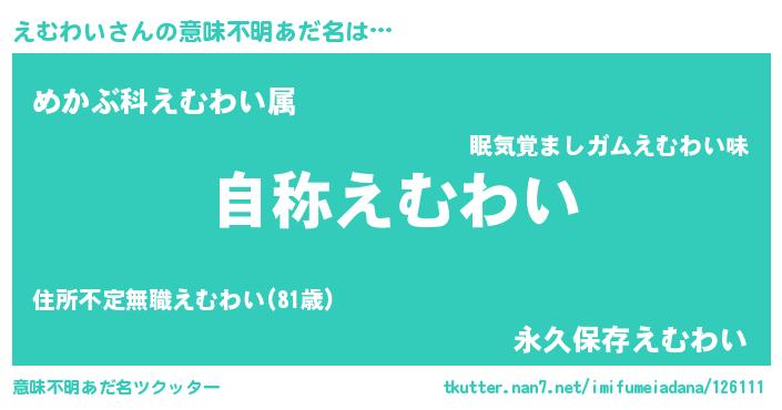 | ヘコむあだ名 | 『えむわい(笑)』『えむぷりん』 |