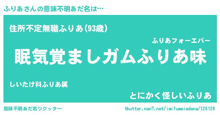 | 女子向けラノベタイトル風あだ名 | 『死神ふりあの再婚』『ふりあの婚約者』 |