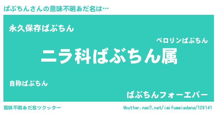 | 男性向けラノベタイトル風あだ名 | 『ばぶちん~年齢イコール彼女いない歴の魔法使い~』 |
