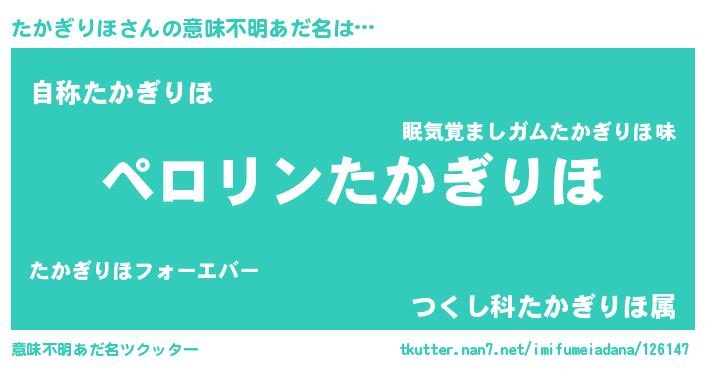 | 女子向けラノベタイトル風あだ名 | 『(仮)たかぎりほのやんごとなき事情』 |