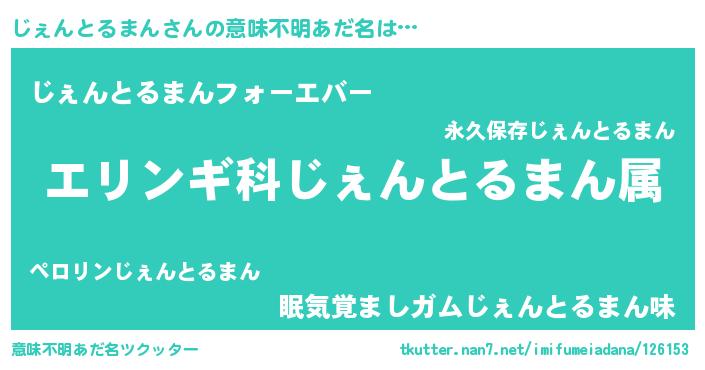 | 料理風あだ名 | 『じぇんとるまんごはん』 |