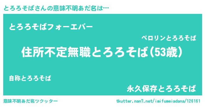 | ヒーロー風カッコイイあだ名 | 『仮面トロダー』『ネオトロロソバ』 |