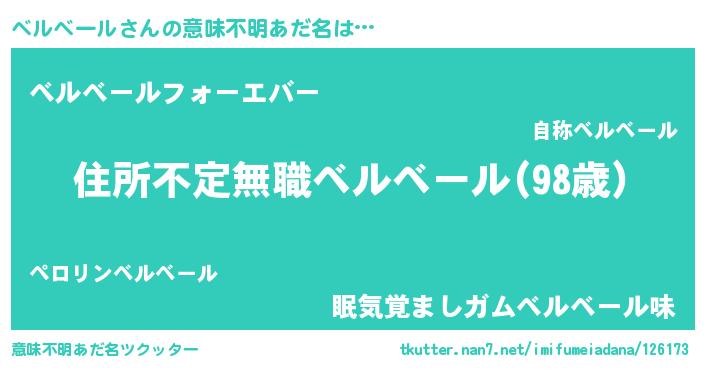 | 男性向けラノベタイトル風あだ名 | 『この素晴らしい世界にベルベールを!』 |