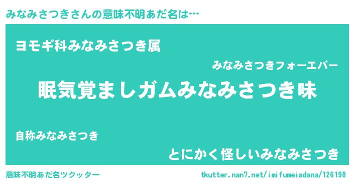 | ヒーロー風カッコイイあだ名 | 『慈愛の使者みなみさつき』 |
