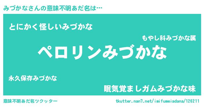 | 男性向けラノベタイトル風あだ名 | 『みづかなの憂鬱』 |