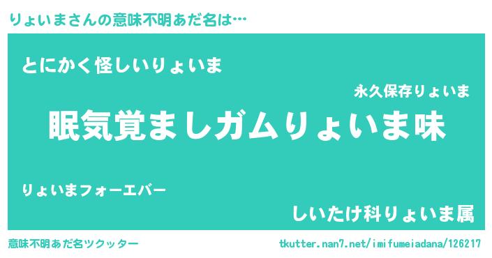 | ヘコむあだ名 | 『りょっぺ』『りょいま(笑)』『豆乳』 |
