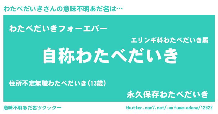 | 女子向けラノベタイトル風あだ名 | 『わたべだいきストレイドッグス』 |