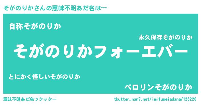 | 女子向けラノベタイトル風あだ名 | 『そがのりかの雑貨屋さん』 |
