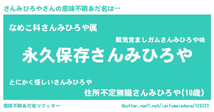 | ヘコむあだ名 | 『さんみひろや(苦笑)』『さん太郎』 |