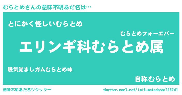 | ヒーロー風カッコイイあだ名 | 『暗黒騎士ムラ』『最強戦士ムラトメ』 |