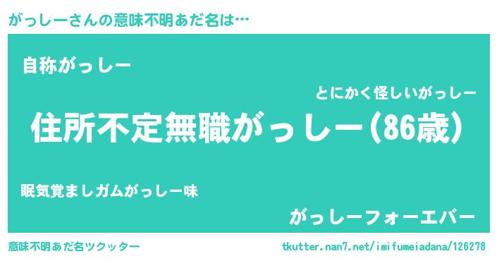 | 男性向けラノベタイトル風あだ名 | 『魔弾の王とがっしー』 |