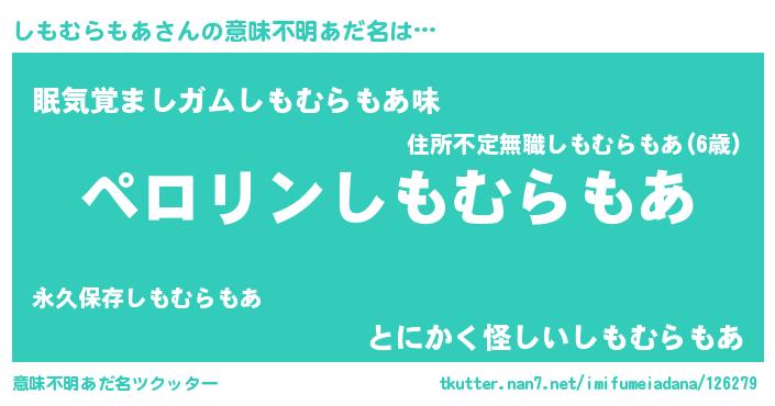 | 胡散臭い通販商品みたいなあだ名 | 『億万長者になれる霊験あらたかなお札…その名も「しもむらもあ」』 |