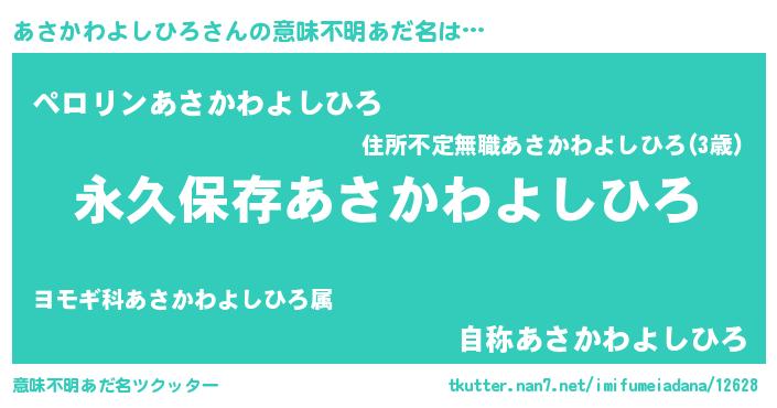 | ヘコむあだ名 | 『あさかわよしひろ(震え声)』『あさにゅー』 |