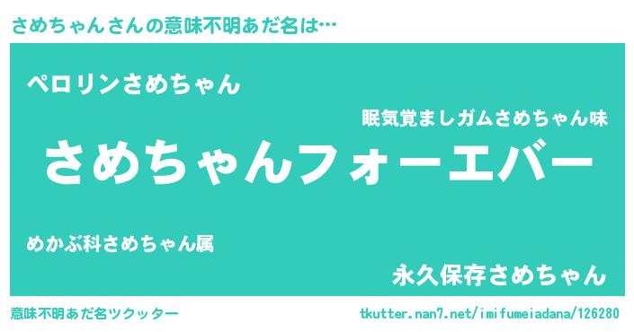 | 欧米人風あだ名 | 『さめちゃんクリステル』 |