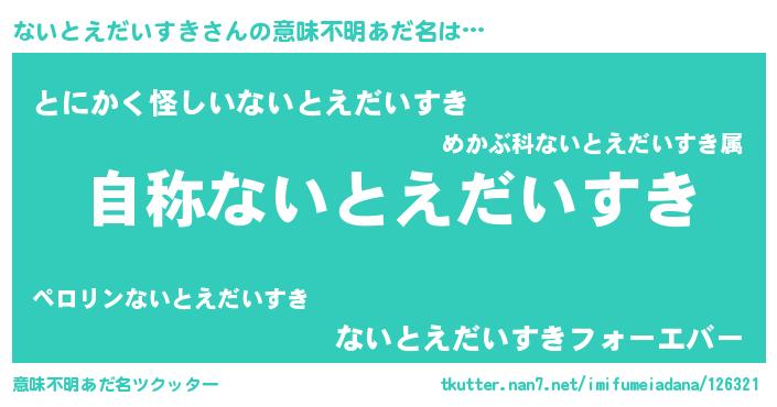 | 肩書あだ名 | 『ないとえだいすき閣下』 |