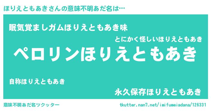 | ヘコむあだ名 | 『ほりもー』『ほりえともあき(笑)』 |