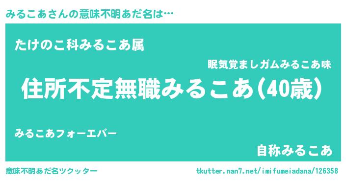 | 女子向けラノベタイトル風あだ名 | 『みるこあが死なない童話 林檎のみるこあの診療簿』 |