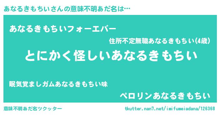 | ポケモン風あだ名 | 『ヒアナルキモチイ』『アナルダネ』 |