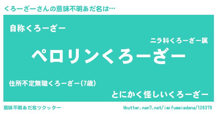 | 男性向けラノベタイトル風あだ名 | 『くろーざーの憂鬱』 |