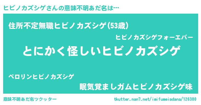 | ポケモン風あだ名 | 『ヒヒビノカズシゲ』『ヒービイ』 |