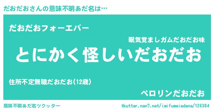 | 男性向けラノベタイトル風あだ名 | 『だおだおの嫁は女の子じゃないと思った?』 |