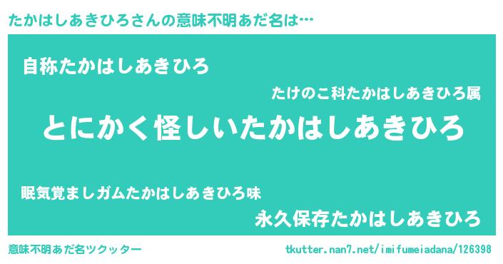 | ポケモン風あだ名 | 『ヒタカハシアキヒロ』『タカセウス』 |