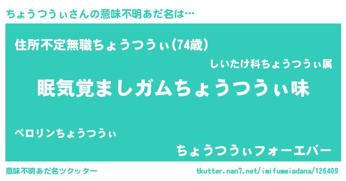 | 女子向けラノベタイトル風あだ名 | 『ちょうつうぃ恋絵巻』 |