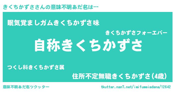 | 男性向けラノベタイトル風あだ名 | 『Re:きくちかずさから始める異世界生活』 |