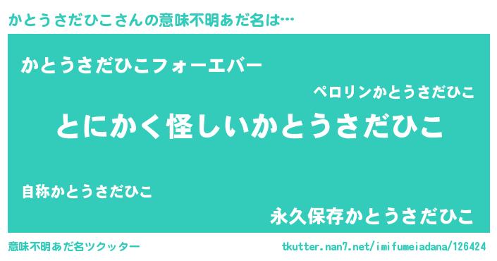 | ヒーロー風カッコイイあだ名 | 『暗黒騎士カト』『ネオカトウサダヒコ』 |