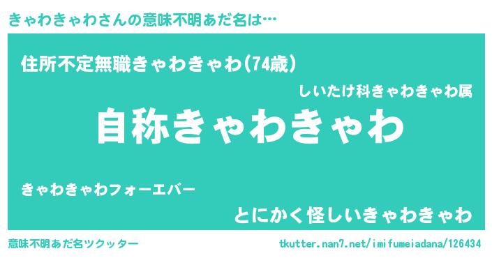 | 男性向けラノベタイトル風あだ名 | 『Re:きゃわきゃわから始める異世界生活』 |