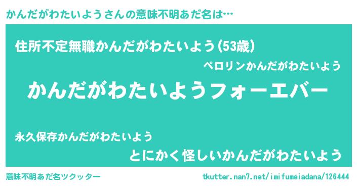 | 胡散臭い通販商品みたいなあだ名 | 『世界が平和になる高級そうな皿…その名も「かんだがわたいよう」』 |