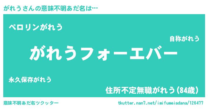 | ヒーロー風カッコイイあだ名 | 『ウルトラがれうマン』『スーパーガレウ』 |